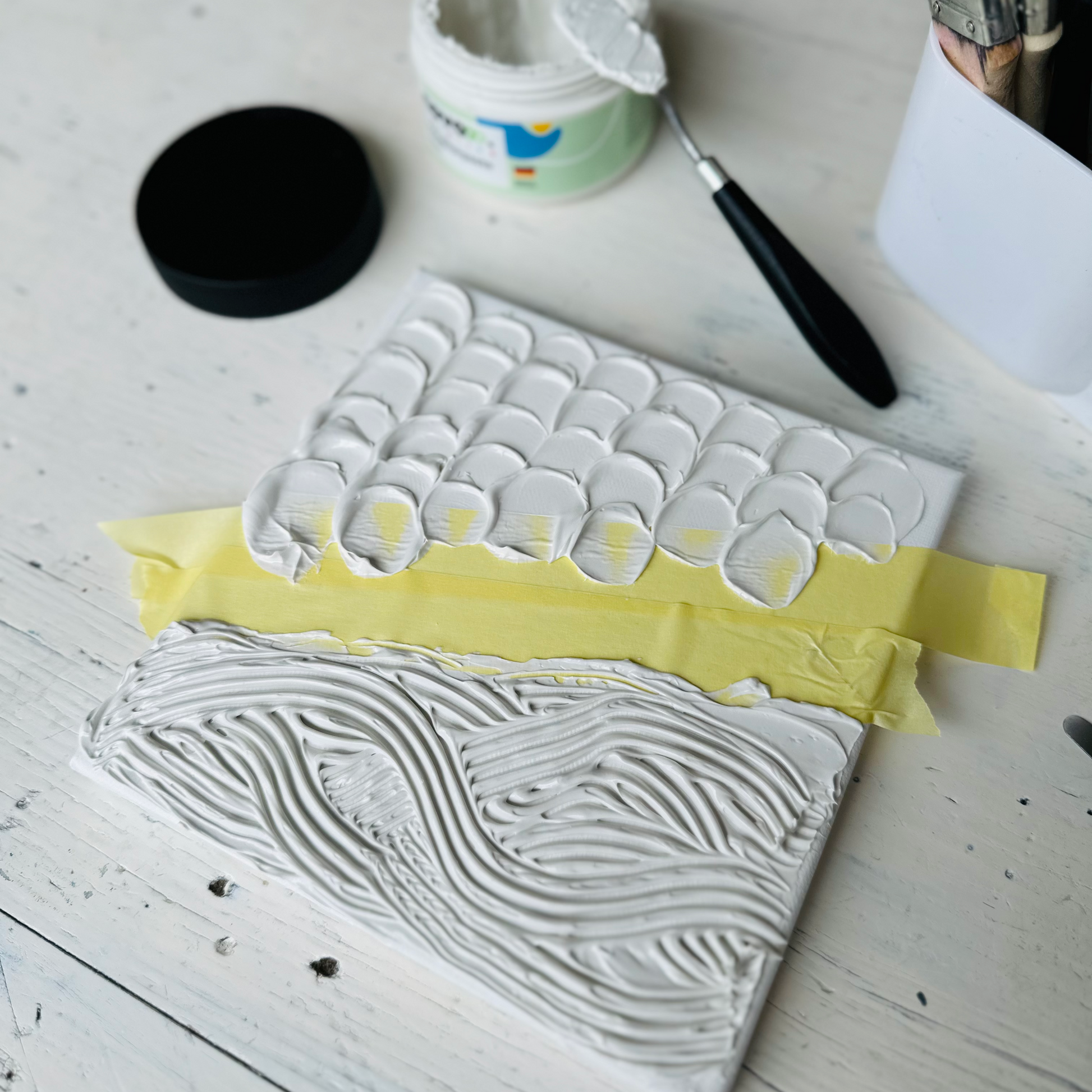 Mit Spachtel und Strukturpasten kommt Textur auf die Leinwände! Durch die Anwendung verschiedener Techniken und Werkzeuge entstehen Werke mit 3D Oberfläche, die für sich sprechen und schöne, sowohl lebendige, als auch dezente Akzente auf deinen Wänden setzten.